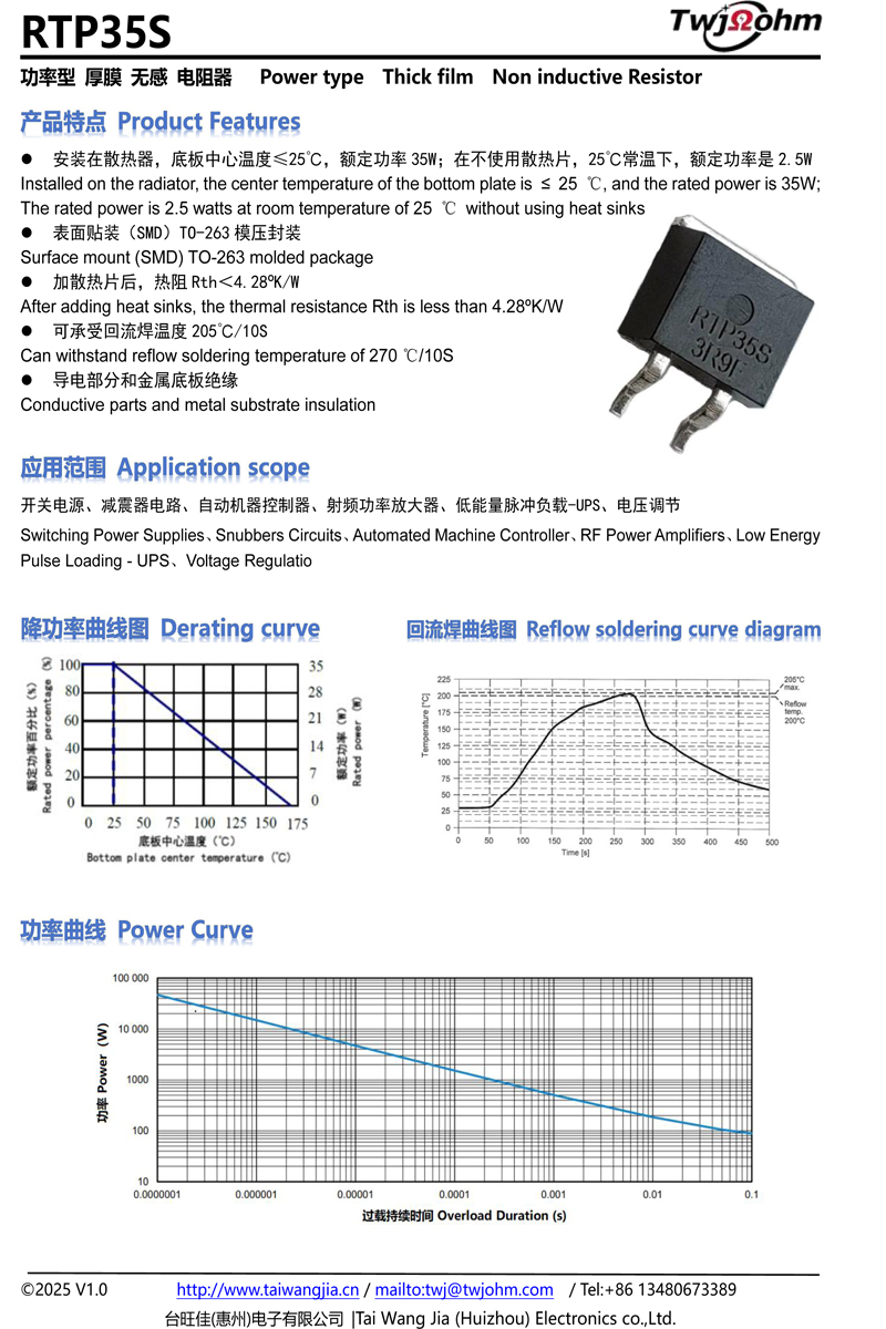 • RTP35WS大功率型厚膜无感电阻3R9F精密高精密泄放贴片电阻采样